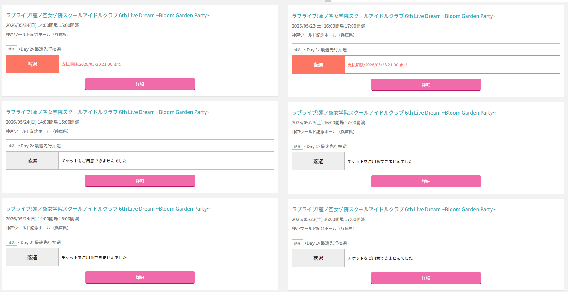 하스6th 고베 최속선행. 선행권 3장을 계정 두개에 분산해서 양일 다 되었다. 둘 다 가장 마지막에 넣은(즉 가장 위에 있는) 코드에 당첨 찍혀있는거 보니 실제론 한장만 넣어도 됐었다는 걸까? 뭐 안전하게 가자. 짭돔은 4장 투입 예정이다.