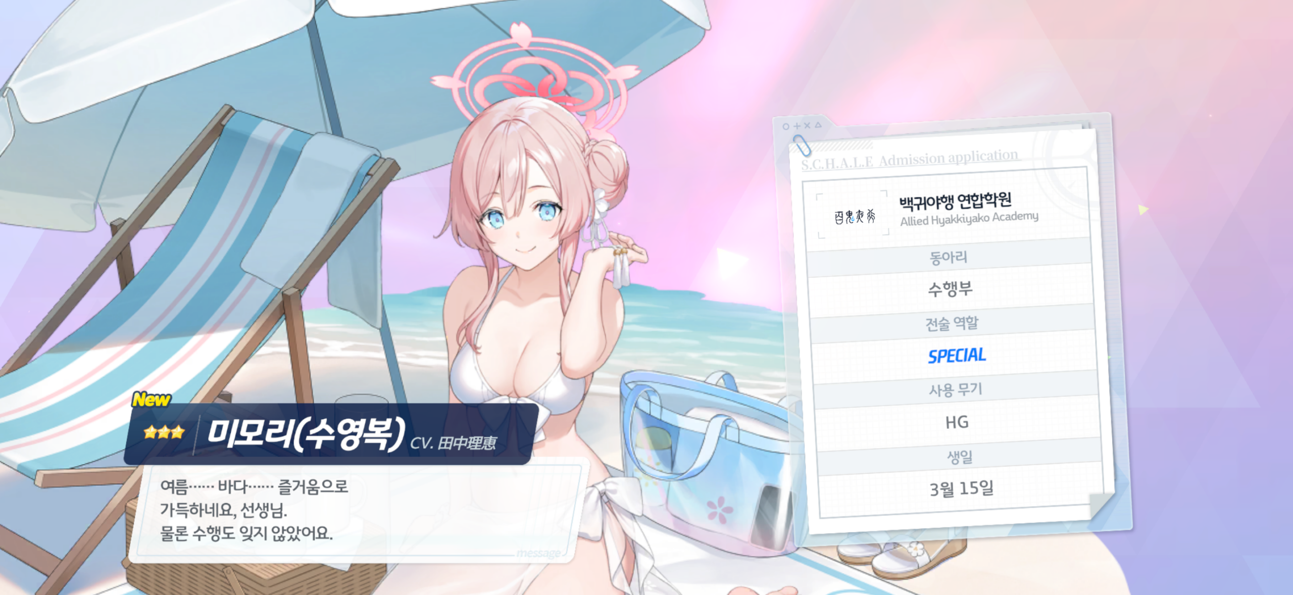 블루아카, 가챠질 근황작성일자 2025-12-29 04:012025-12-29 04:01 무료 100연 이벤트. 뜬금 미모리 수영복만 뜨고 그 외엔 죄다 중복, 픽업도 안뜬다. 그래서 일단 모인 돌로 처장에서 세이아 수영복을 데려왔다. 그리고 그걸로 끝. 그 다음 이어지는 미카 나기사 등은 손도 못댄다. 돌 없어서. 어차피 요즘 블루아카 잘 하지도 않고 때문에 캐릭 뽑을 이유도 없어서 그냥 넘어 가야겠다.