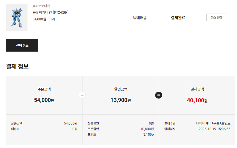 (추가) 외출해서 코엑스 들린 김에 옵션 파츠 22번도 온라인 취소하고 오프라인 구매 해 왔다. 미코루루도 재고 있긴 하던데… 고민하다가 그냥 냅뒀다. 어차피 무료 배송 들어갔고, 두개 사 놓을 필요도 없어 보이고.